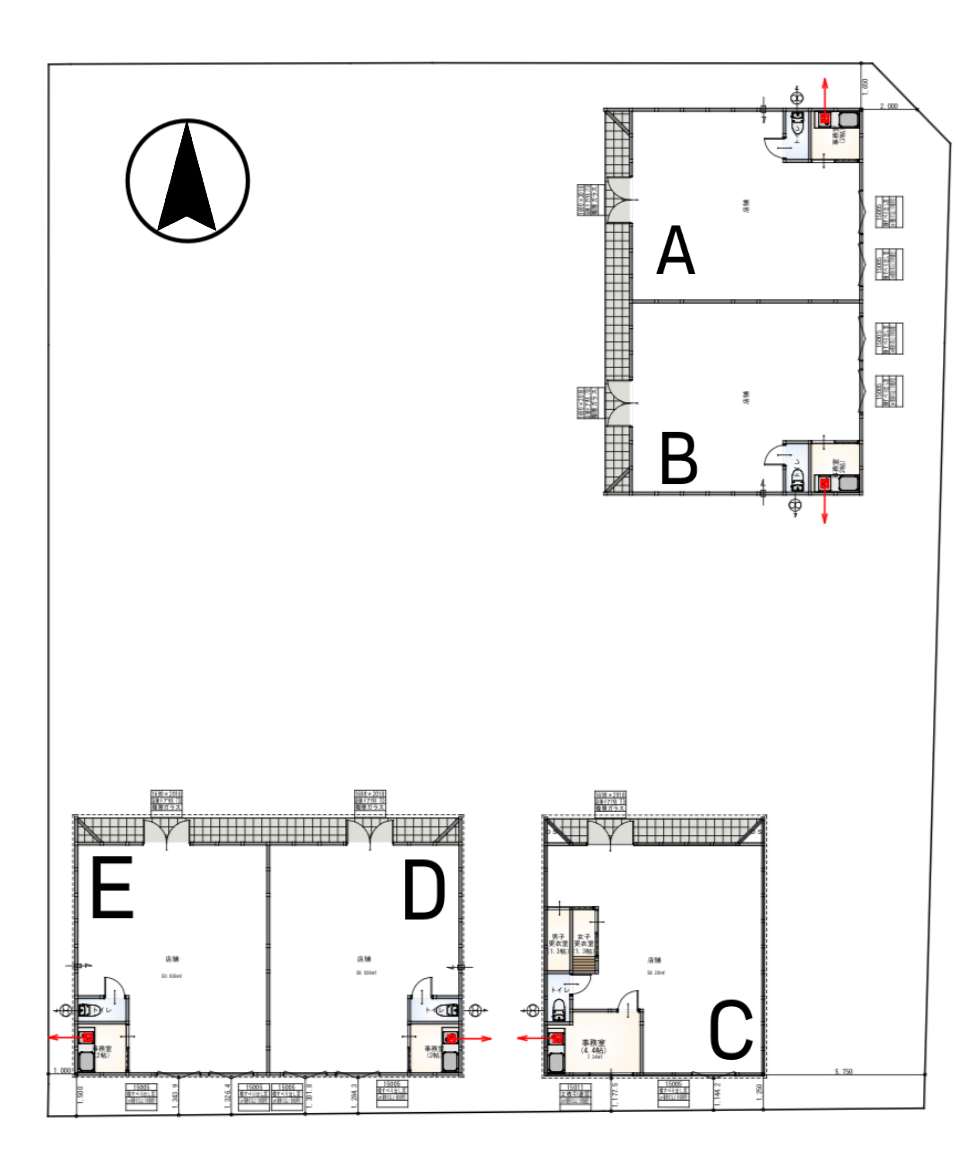 | 設備棟 | C:63.35㎡/天井高:3m(Cのみ)トイレ・ミニキッチンあり/エアコンなし(各自でご用意をお願いします)/下水完備/駐車場各6台 |